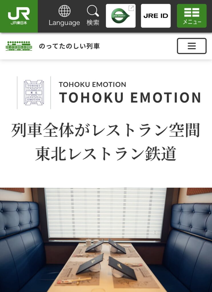 JR東日本さまの観光列車「TOHOKU EMOTION」の運行に際し、ターゲット選定やブランディングのための受容性調査などでお手伝いさせていただきました。