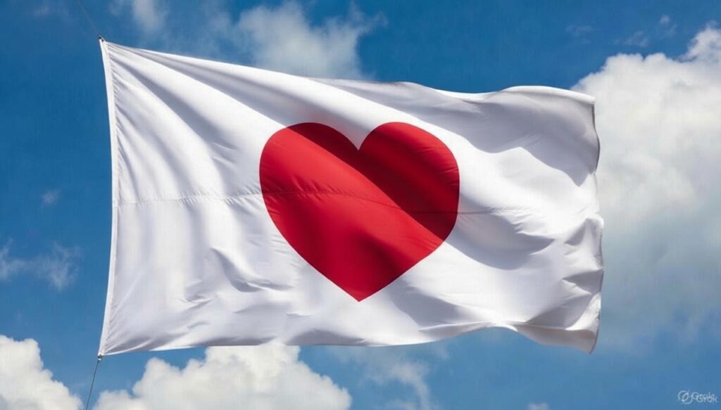 ※今回、AIに作らせた画像は「ハート形の日本国旗」。令和の日の丸はこのぐらい軽やかな感じがちょうどよさそう⁈
